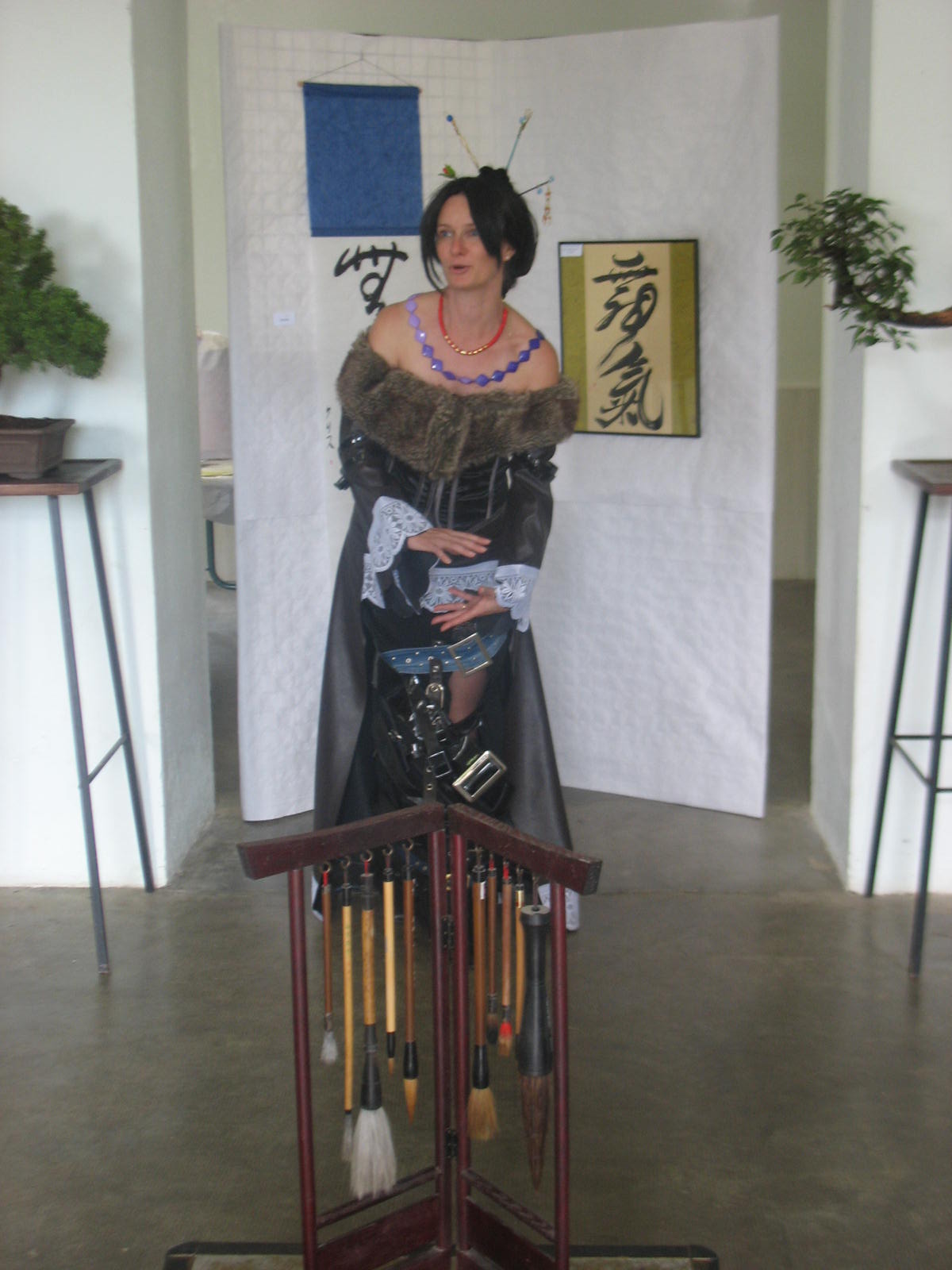 Les bénévoles et moi avons déambulé dans le village en cosplay. Les passants étaient surpris de nous voir ainsi costumé! en effet il y avait Temari de Naruto, lapin crétin, les vocaloïds, et lulu de ffx. Nous nous sommes bien amusés tous ensembles. puis l'expo sur le japon avec les calligraphie et les bonzaï ont eu du succès.